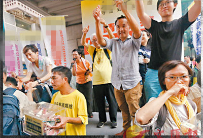 4月24日刚被判处缓刑的非法“占中”祸首朱耀明、李永达及被判社会服务令的张秀贤出现在人群中;连声称自己患有脑肿瘤需要开刀,请求法庭押后判刑的立法会议员陈淑庄也站在台上“兴奋挥手”。