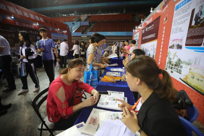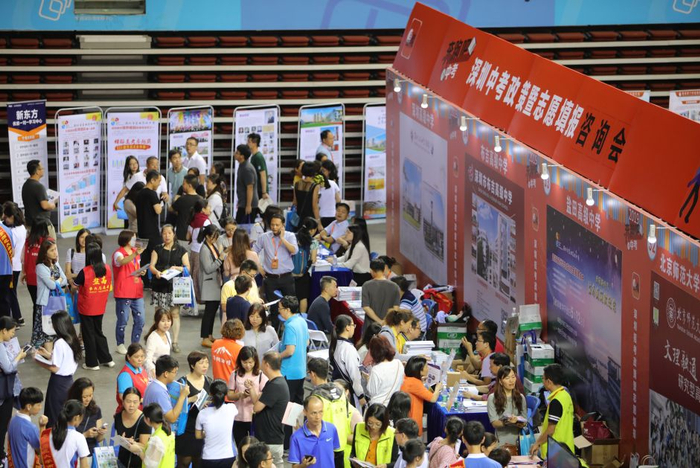 虽然昨日,深圳同时有7场关于招生的咨询会,但位于华润深圳湾体育中心“春茧”体育馆内,由深圳报业集团主办、晶报承办的深圳中考政策暨志愿填报咨询会(以下简称“晶报中招展”)依然受热捧。