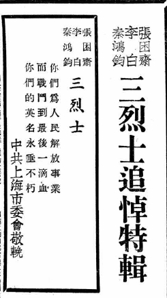 李白张困斋秦鸿钧三烈士追悼大会