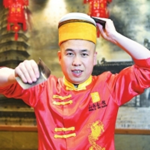 时光再次穿越回十几年前。2006年12月1日这一天,王张龙的职业生涯又有了变化,他来到了古香古色、主打山西菜和面食的山西会馆。新的工作环境,给了他新的平台,在这里,他的“面食表演技艺”有了充分的施展空间。很多客人有时候不为了吃饭,而是专程来看他的表演,这更刺激了王张龙的“尝新”意识。“如果闭着眼睛削面……”王张龙的脑海里总能冒出非常大胆的想法,2007年,他开始尝试蒙着双眼削面。