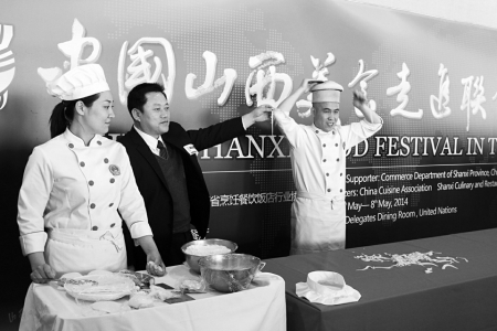 2014年的山西各大媒体,几乎都刊登了这样一条消息:4月30日在美国,“中国山西美食走进联合国”系列活动上,当地人看到王张龙表演的“独轮车削面”“关公扯面”“龙须拉面”“面气球”等绝活时,非常震撼,不少现场观众对面条的筋道赞不绝口,品尝一碗不过瘾,还要再来一碗。