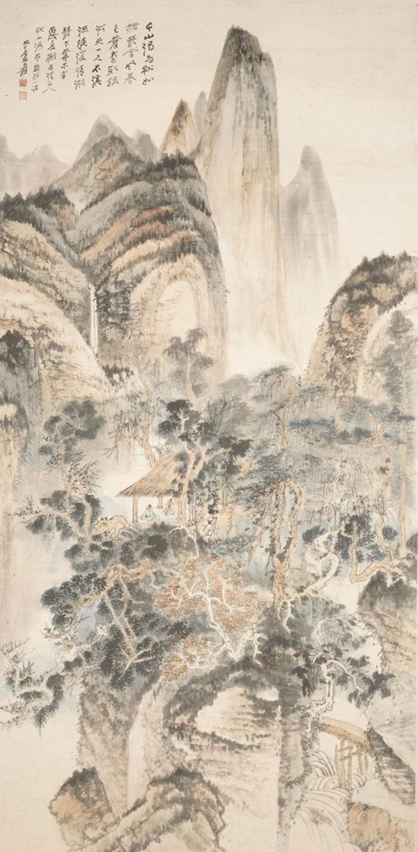 张爰《拟石溪秋山瀑布图轴》,1983年张大千遗作展览展出。