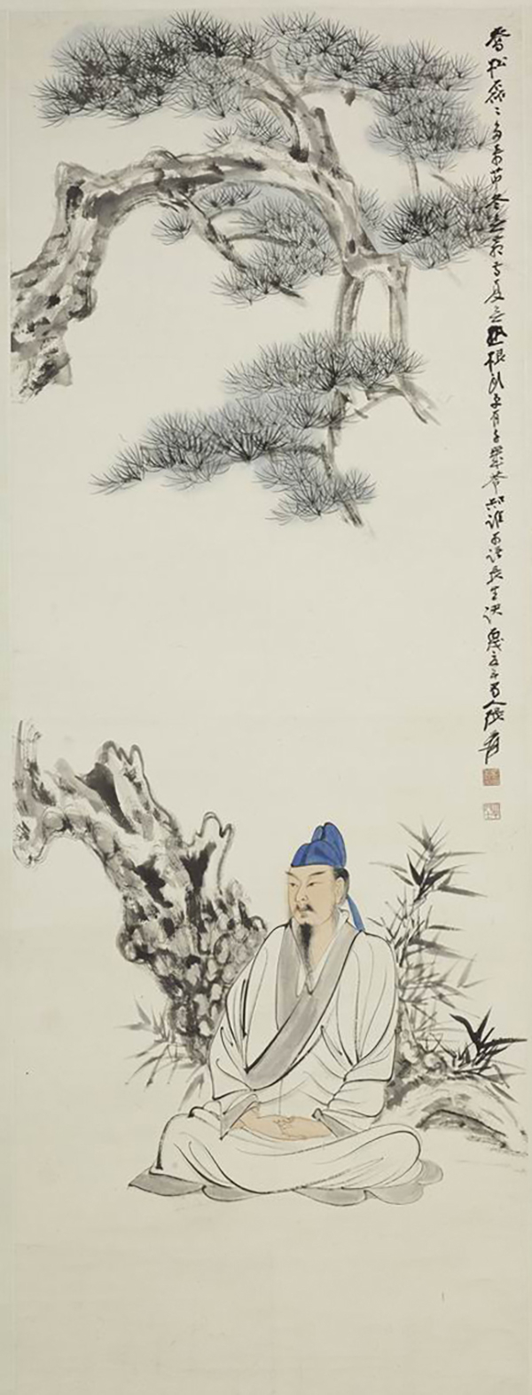 张爰《松阴趺坐图轴》,1983年张大千遗作展览展出。