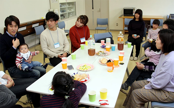 日本岩手县盛冈市 “先辈爸爸座谈会”上,几位年轻的爸爸分享了育儿生活的苦与乐。这几个家庭都是双职工,夫妻双方共同分担养家赚钱和育儿责任。如果夫妻中的一方不得不长期超时加班,共同育儿的家庭结构是不可能维持的。图片来自:岩手日报