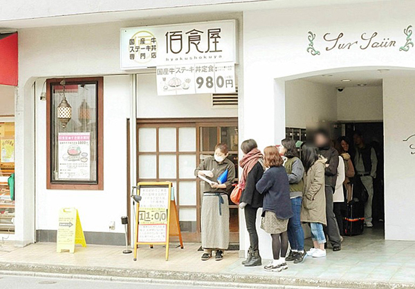 午餐时间,在“佰食屋”门口排队的人们。图片来自:网站Gigazine
