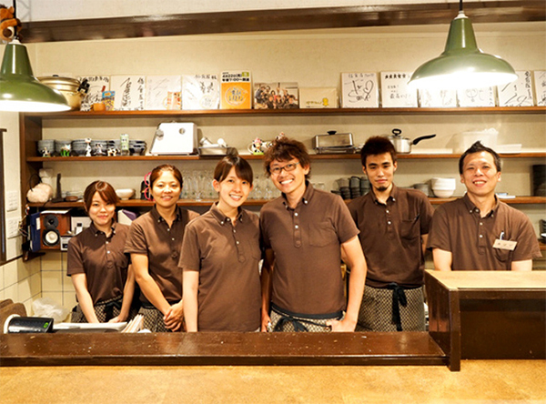 “佰食屋”员工合影。中间的是中村朱美和丈夫。图片来自:Foodist