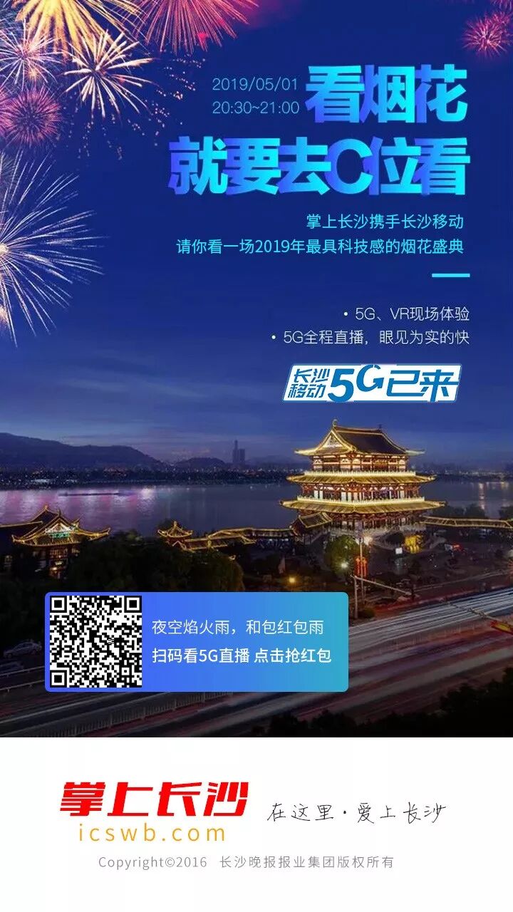 这个五一来长沙吧!夜空有烟花雨,看5G直播还有红包雨……