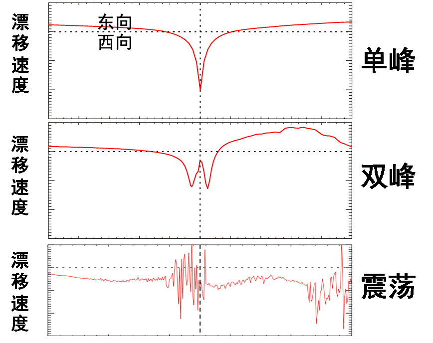 从统计角度来看,从单峰到双峰再到震荡结构,对应着太阳活动或地磁活动增强。特别是通过对近几十年发生的磁暴期间的SAPS结构进行调查发现:图2中剧烈的震荡结构只出现在少数极强磁暴的主相期间,可能代表着内磁层剧烈的相互作用。