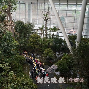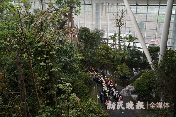 汪远介绍,馆内植物部分来自国内,部分来自东南亚、美洲、澳洲、非洲等。从去年8月种下第一棵树起,布展历时整整8个月,先用大型植物搭建“骨架”,再进行中下层灌木、地被的种植,最后布置花卉。