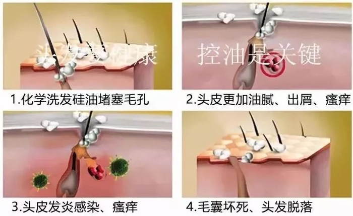 硅油和柔顺剂堵塞毛孔,在头皮形成一层脂质