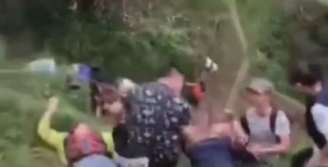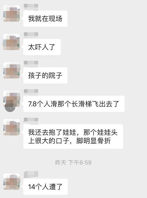 从现场视频可看出,出事的设备是一处较高的滑梯,多人受伤躺在地上。