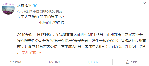 5月2日凌晨2点,成都市双流县太平镇党委政府官方微博 @天府太平 发布关于太平街道“孩子的院子”发生事故的情况通报: