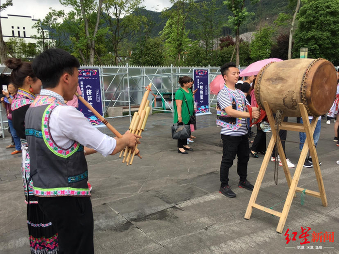 红星新闻记者从花山音乐节现场了解到,心灵手巧的苗家“绣女”将现场展示苗族刺绣,针线游走在空白的底布上,绣出朵朵“鲜花”;苗家小伙们现场打起鼓,吹奏芦笙,和游客们一起“挤芦笙”,共同欢度美好时光。