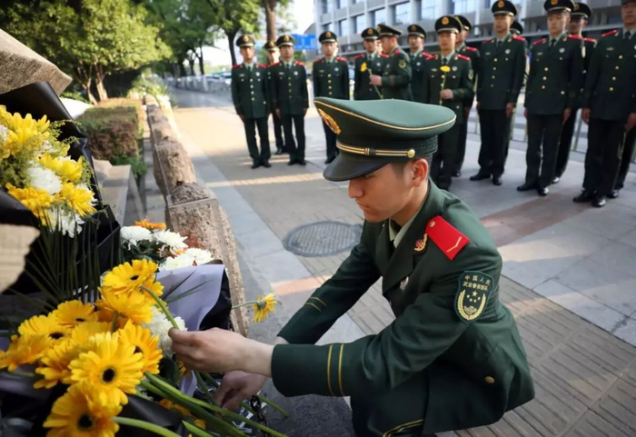 在“五三惨案”纪念碑前,官兵手捧鲜花,深刻缅怀惨遭日本侵略者杀害的遇难同胞,缅怀为抵抗日本侵略者献出宝贵生命的革命先烈和民族英雄。
