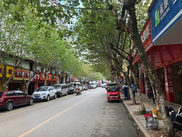 现在的彩云路仍为宽80米,主道为双向六车道,中间被宽10米的绿化带隔开;辅道为双向各两车道,主道辅道间被宽5米的绿化带隔开;辅道旁为非机动车道和公交车专用道。相比于原本的双向十车道,不同车辆类型的道路界面更清晰,完善了“各行其道”的功能;但对于行人来说,道路还是太宽,仍然不可能一次绿灯就穿过马路。