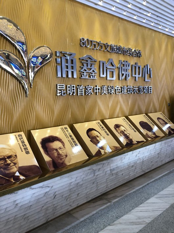 呈贡新区一处新楼盘的售楼大厅挂着卡尔索普的画像,卡尔索普团队为该楼盘进行了规划设计