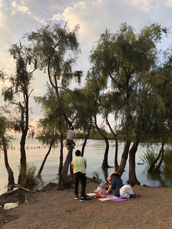 2018年8月末,一个普通工作日的傍晚,有零星居民在捞鱼河湿地公园的水边散步,不少人带着孩童。孩子们坐在沙地上自在地玩沙子,时不时跑到水边,拨弄缓慢涌来的滇池水。这个湿地公园是云南昆明呈贡新区一处免费的亲近滇池的公共空间,深受当地人喜爱。