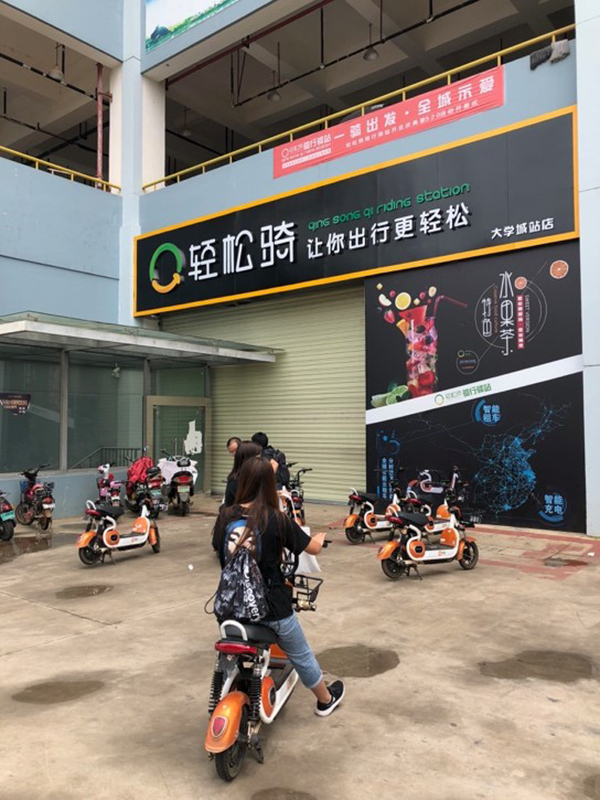 在人烟稀少的宽阔马路边骑自行车,动辄骑一两公里才能到下个十字路口,这也算一种独特的骑行体验,巨大的道路尺度会让行人和骑行者感到渺小。记者在呈贡新区也看到了不少共享电动车。相比自行车,电动车显然更符合呈贡的空间尺度。