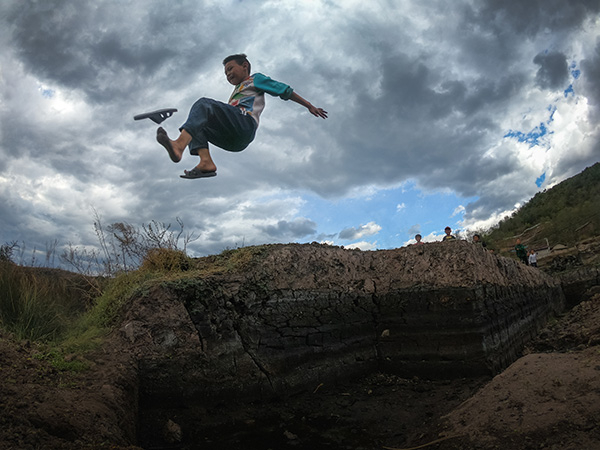大凉山拍摄时被当地的小朋友们围观,有的孩子直接在农田里模仿、演练起了跑酷的动作。