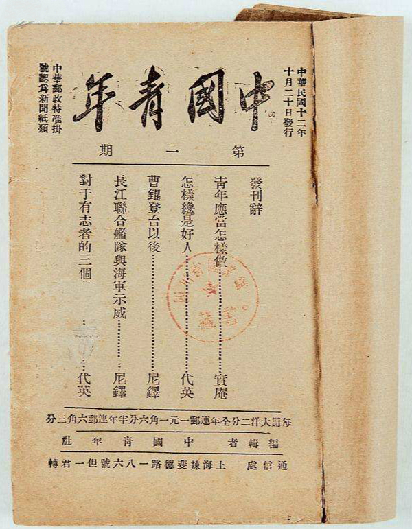恽代英的文章《对于有志者的三个要求》发表在《中国青年》杂志上