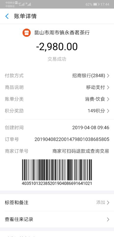 郭女士提供的付款记录显示,这是一个价值2980元买的工艺茶盘,加上其他物品一共3600元。