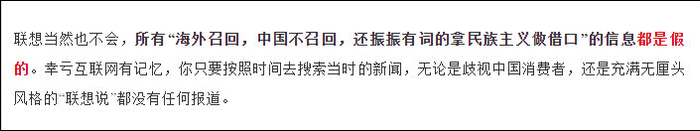 联想:所有“海外召回中国不召回,还拿民族主义做借口”的信息都是假的
