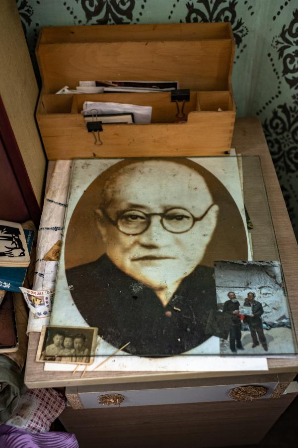 据说在1930年代末,王一亭举家离开后,梓园便由王一亭的管家管理,这位管家便是楼斌的母亲。1946年楼斌出生,此时王一亭去世已8年。再往后,一楼搬进住户,梓园的一部分成了“南市起重安装队”的工作区域,管家之子楼斌出学校后被分配到上海仪表电镀厂参加工作。虽与王一亭未曾谋面,但大半个世纪后,楼斌床头柜的玻璃下依旧放着王一亭的照片,在他凌乱的家中,也可随手拿出过去的老照片,同时在一本老旧的记事本上,也记录着王一亭孙辈的名字生日。