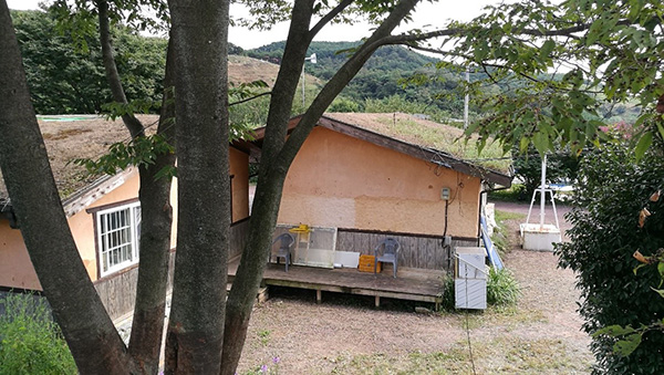 蒲公英的学生宿舍是茅草屋,屋顶是泥巴和茅草做的,上面长了各种各样的草,是有生命的屋顶。他们在屋角的墙壁上,专门挖掉一块,以露出建筑材料:屋子的外墙是土坯,里面是稻草,使用当地最传统的建筑材料和工艺。