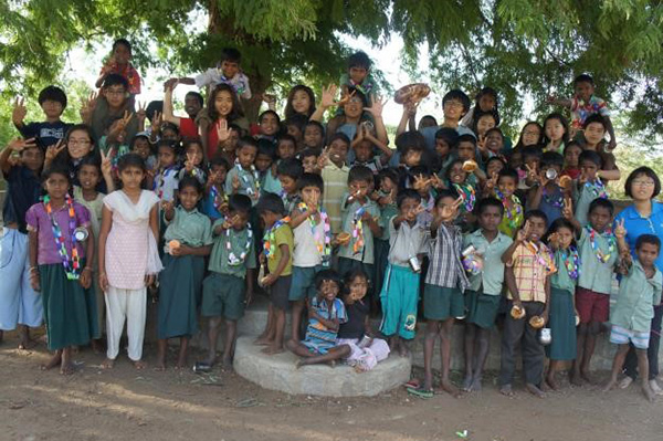 蒲公英共同体的学生与印度当地的孩子在一起。