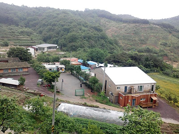 自1986年起,金博士夫妇就频繁到农村参访,之后搬到农村,跟穷人们在一起,逐渐开创出自己的共同体事业。1991年,金博士在山清郡的这块土地上,租下一间废弃的房屋,开始做蒲公英共同体建设。他们翻建了房屋,进行各种加固,逐渐建成了世外桃源般的一个共同体。