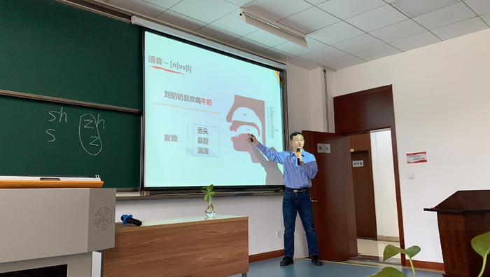 现代汉语与日常生活联系紧密,课堂上常讨论具体的语言现象,生动活泼。讲到成语“一衣带水”,李果老师讲述了隋文帝“我为百姓父母,岂可限一衣带水不拯之乎?”的典故,请大家品味外交辞令中“一衣带水”的深意。讲到俗语“南人吃米,北人吃面”,他皱起眉说“这个我不同意,我是北方人,也爱吃米啊!”,引得大家哄堂大笑。教材中“接风的饺子,送行的面”存疑,他特意找来《激情燃烧的岁月》中的片段,佐证送行煮面条才是“不懂规矩”。平时李果老师也很注意了解学生关心什么、关注什么,吸收到教学中。赵本山小品《拜年》涉及的歇后语,电影《绿皮书》涉及的语体色彩,用国际音标拼写易烊千玺等都会出现在课堂的教学和练习中,而且这样的例子还在不断更新。