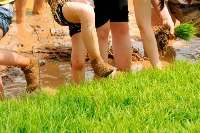 孩子们其实最爱的是大自然,大人们可别以为到了户外当好孩子的摄影师就OK了,别忘了自己曾经也是一个小孩,和自己的宝贝一起卷起裤角,挽起袖子,拿起一束束小小秧苗,来和农民伯伯一起:手把青苗插田野,低头便见水中天,六根清净方为稻,退步原来是向前。