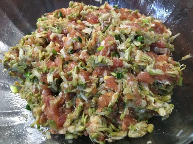 妈妈则会把槐花洗净晾干,加入姜、葱末、盐,搅上肉馅,蒸上一锅槐花大包子,一口气都能吃上五个,那是家的味道。
