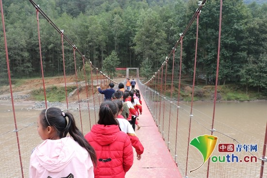 经过施工团队三个月的奋战,今天,经过验收的吊桥正式进行通行,孩子们终于能够踏上吊桥,走上一条稳稳当当的上学路。