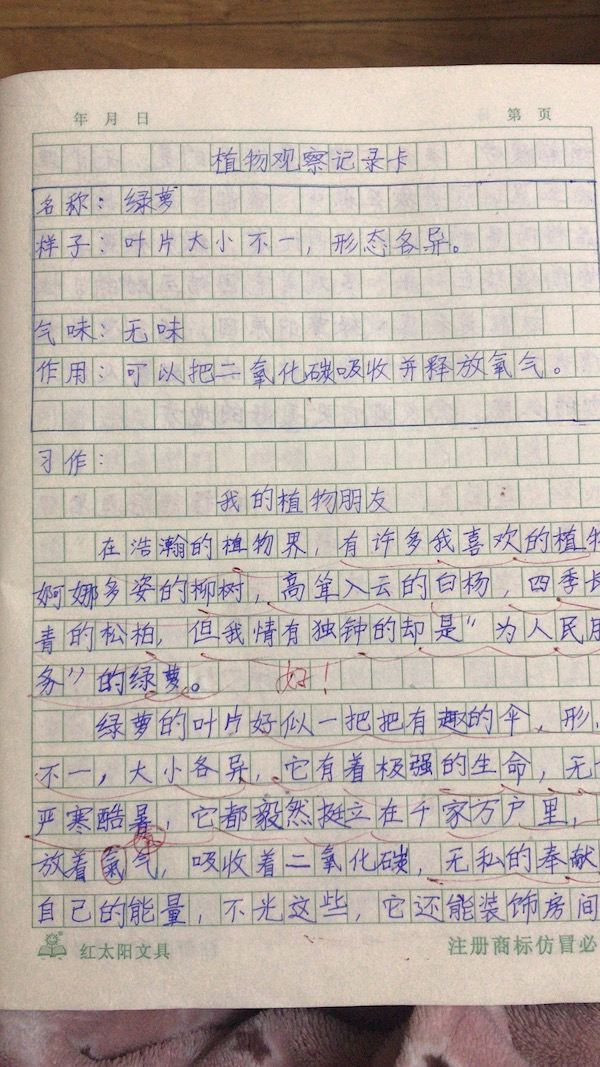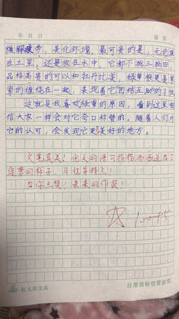 生活中的大小事情,班级里发生的事,这些都是邢栋的“素材”。而从一年级起,他就担任“代理班主任”的职务,这让他更加关心身边的人和事。“今天发生的‘故事’比较多,就写作文,‘故事’少点,就写日记。”他说。