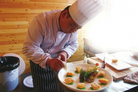 鱼子酱、沙拉……在最后一轮的争夺赛上,选手梁俊武的一道《母子相会》利用了难老泉水养的虾,配以独特的中西融合酱料,将本地食材的营养和美味完美激发。“传统晋源宴席中的虾,多采用油焖、煎炸等做法,我希望能挖掘新的方法,将晋源菜品处理得更精致、美味、营养。”从小跟着父亲学厨艺的梁俊武,耳濡目染间,对晋源传统菜品和宴席有着更深的理解。