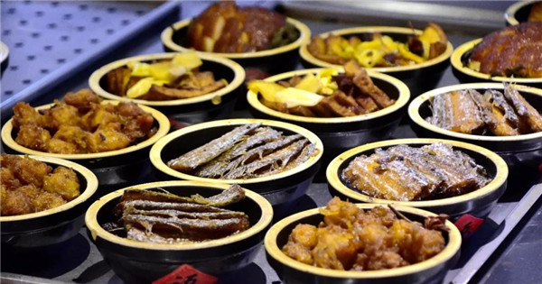 其中蒸碗系列有粉蒸肉、鸡块炖土豆、梅菜扣肉、蒸海带、蒸金瓜、蒸豆腐等16余种;熟食类有熏鸡、熏猪手、熏凤爪、卤鸡蛋等;现场加工制作的手工水饺有猪肉大葱、猪肉白菜、韭菜鸡蛋等多种馅料;主食类有牛舌火烧、熏肉大饼、小笼包,还有可以根据自己口味自由搭配的打卤面系列。除此之外,还有精致爽口的时令小凉菜和汤、粥系列食品。