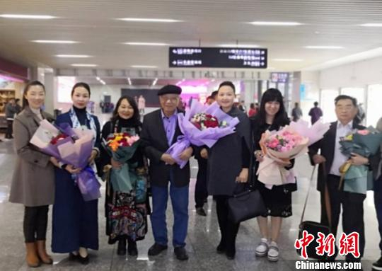 郑愁予(中)抵达湖南怀化受到热情接待 钟欣 摄