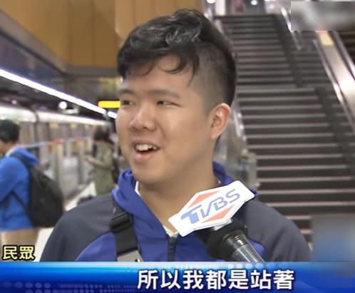 而台湾的文化好像就是,年轻人坐爱心专座就是不好,所以他基本都是站着。