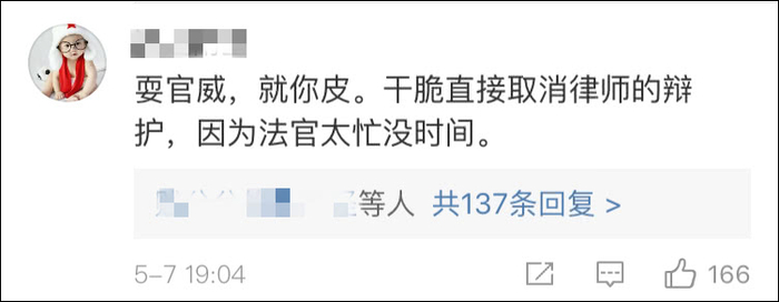 如今,罗法官的态度在网上引起了巨大争议。包括微博认证为律师的部分网友认为,女法官这番呵斥分明属于“耍官威”,构成了对律师辩护权利的侵害。