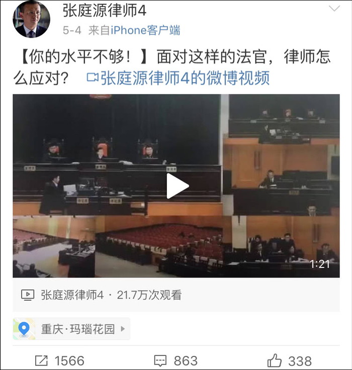 5月4日,网友@张庭源律师4 最早在微博上分享了这段视频,并配文质疑法官的态度:“面对这样的法官,律师怎么应对?”