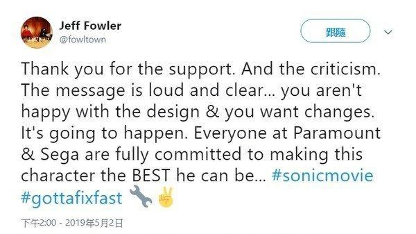 《刺猬索尼克》预告片发布之后,遭到网友一片吐槽,认为这个索尼克造型丑哭了,导演杰夫·福洛随后在推特上表示,注意到网友意见,马上会着手修改