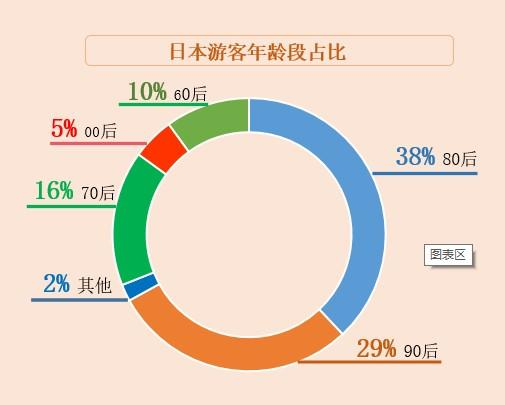 从年龄结构上来看,80后和90后的日本游客成为赴中国旅游的主力人群。其中,80后以38%的占比位居第一,90后紧随其后,占比为29%,70后则为16%,60后为10%,00后以5%的占比排在第五名。