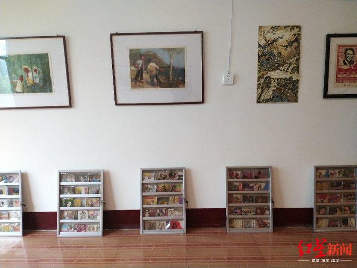 红星新闻记者看到,三层楼每层的房间都摆满了展品,美术馆的介绍称,藏品达到4万多件,有红色连环画、红色图片、国画、书法、摄影等。连环画有《红岩》《小八路》《霍元甲》《鸭绿江畔》等,到现在已经达到了2万多册,此外,他还收集一下红色主题图片、国画、书法、票证等。