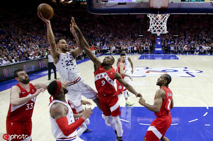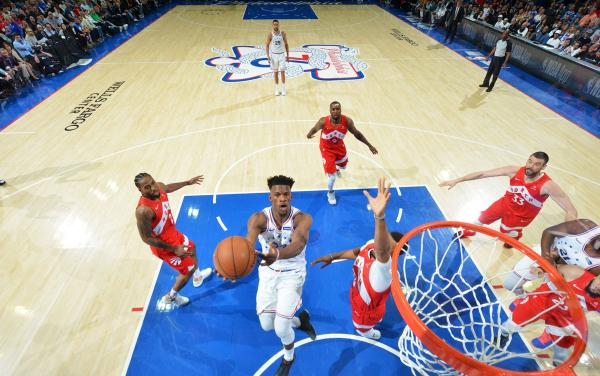 天王山战役的36分惨败并没有打击76人的斗志,回到主场第六场和猛龙的生死战中,76人前三节就领先了20分,也用一场“打花”的方式回敬了猛龙。