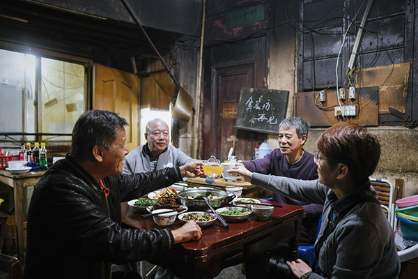 老西门居民搬走后,经常回来聚餐。这是他们对住了一辈子的地方的告别方式。
