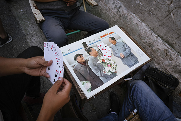 收废品者空闲时聚在一起打牌。
