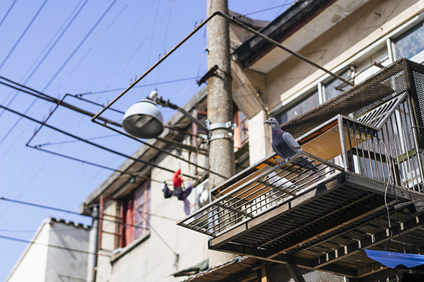 黄浦区老西门金家坊,老板阿七养的信鸽停在鸽棚上。几个月后,阿七搬走,鸽子也被低价出售。