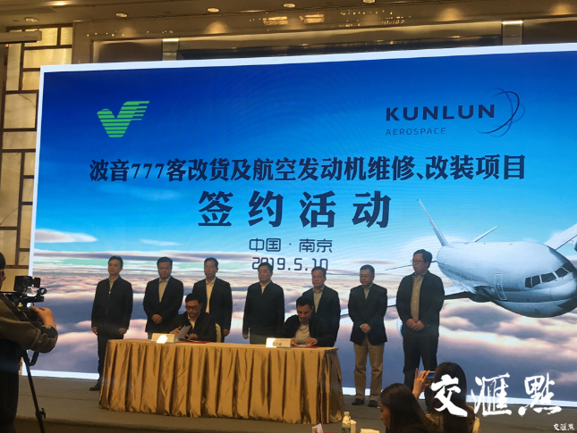 交汇点讯 5月10日,南京市江宁开发区波音777客改货及航空发动机维修、改装项目签约活动成功举行。这是目前全球唯一的波音777型号大型宽体飞机“客改货”基地项目。该项目建成后,预计形成每年改装24架飞机的产能,占全球刚需数量近一半。