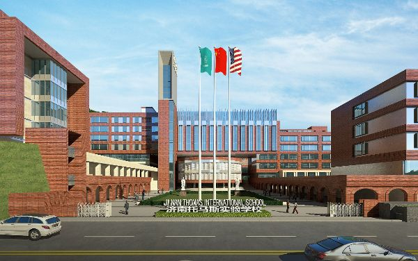 济南托马斯实验学校及外籍人员子女学校坐落于济南城市的未来---高新区汉峪区块凤凰路南延长线1.5公里处,占地115亩,总建筑面积11.5万平方米,是一所K-12(从幼儿园到高三)十五年一贯制的民办国际化学校。学校是济南市政府为进一步改善招商引资和人才引进环境、加大教育领域供给侧改革而确立的重点项目,也是济南市首所真正意义上的国际学校。学校已于2017年启动招生,首批高一学生正在美国盐湖城高中插班学习即将回国。学校以国有民办的创新模式运营,最大程度地保障学校办学自主权的落实和教育教学创新享有足够空间。